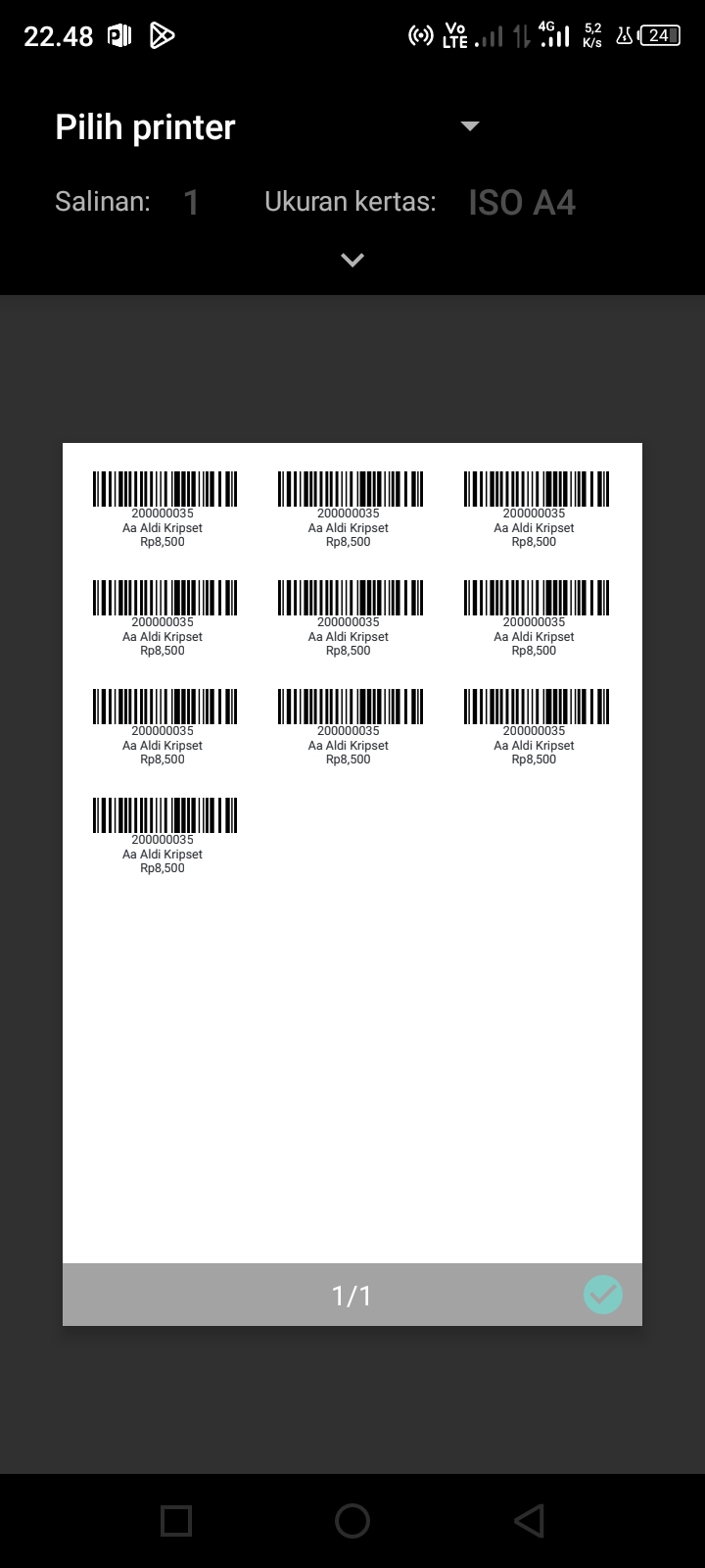 Memiliki fitur canggih dapat digunakan untuk mencetak barcode. Dapat memilih barang dan jumlah barcode yang ingin dicetak tidak terbatas