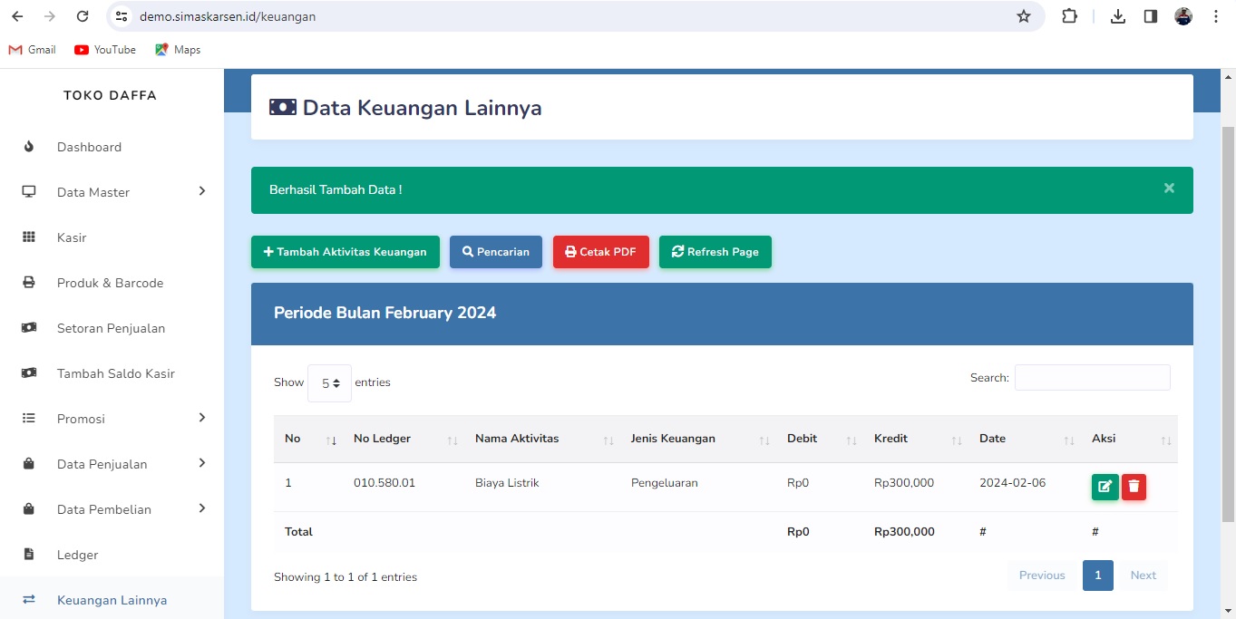 Fitur ini untuk posisi Kepala Toko yang akan menambah saldo kasir sesuai dengan permintaan dari kasir terkait dengan prosedur yang berlaku