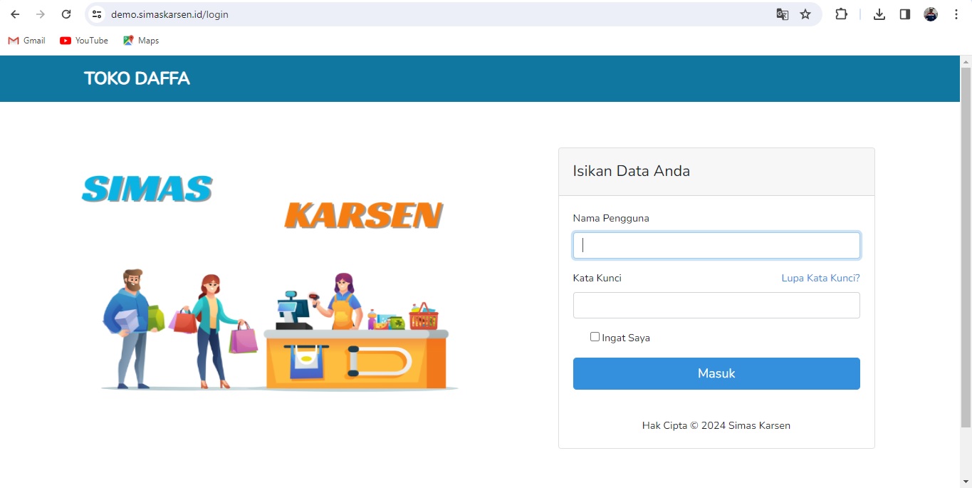 Tanpa perlu instal di App ataupun Play Store, Simas Karsen langsung bisa di buka di browser kesayangan Anda